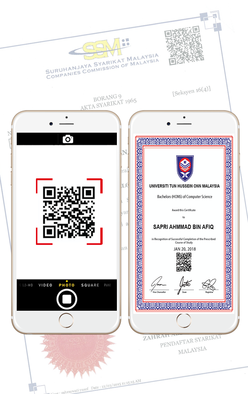 The Verification of the Physical Certificate can be done Instantly through the Scanned QR-Code on the Certificate, Using the Smart Phone Camera.